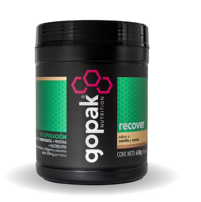 GOPAK recover, recuperador desarrollado con un exclusivo ratio carbohidrato:proteína (3:1) para recargar glucógeno y reparar fibras musculares. Colágeno para la regeneración de tejidos y cúrcuma para reducir la inflamación y los dolores musculares producidos al realizar actividad física.