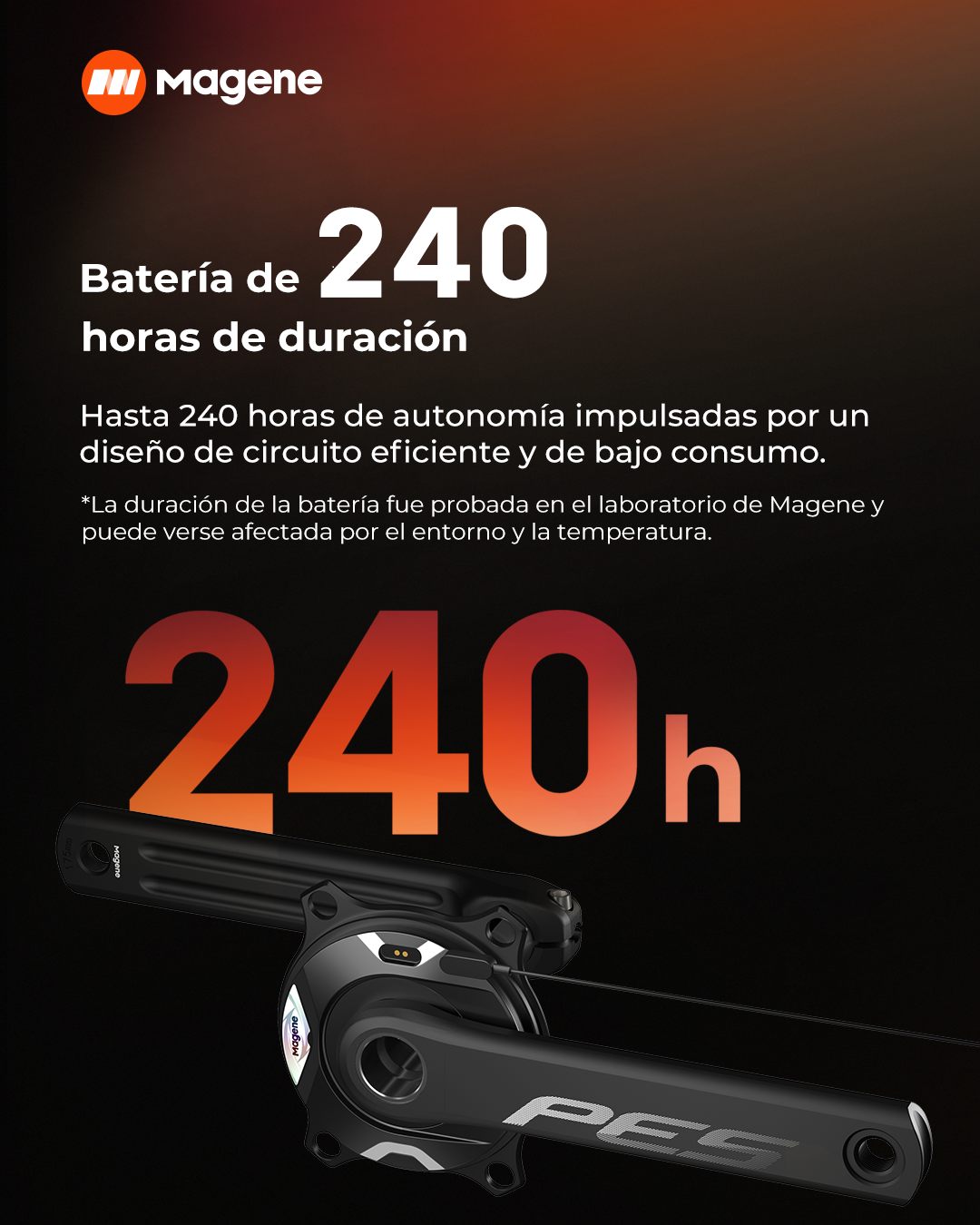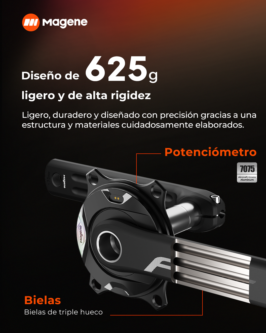El Magene PES P515 es un medidor de potencia (“power meter”) integrado en el spider del pedalier / biela. En lugar de medir sólo una pierna, registra la potencia generada por ambas piernas. Se usa para entrenamientos de ciclismo o ruta, competiciones, y para quienes quieren métricas precisas de rendimiento (potencia, cadencia, balance izquierda-derecha, suavidad de pedaleo, etc.).
