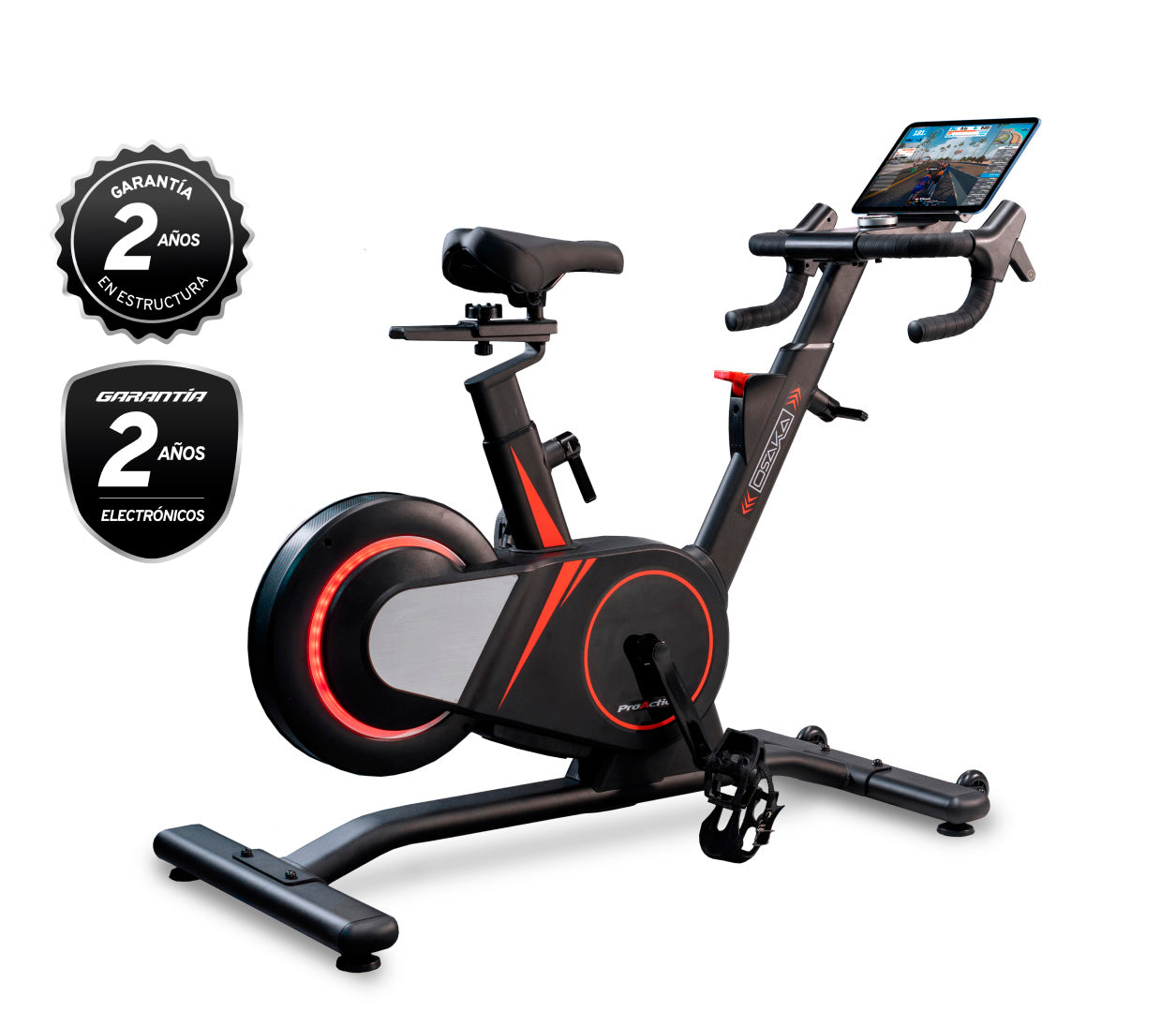 - Extras: La volante cuenta con luces LED que cambia de color según la resistencia del ejercicio.