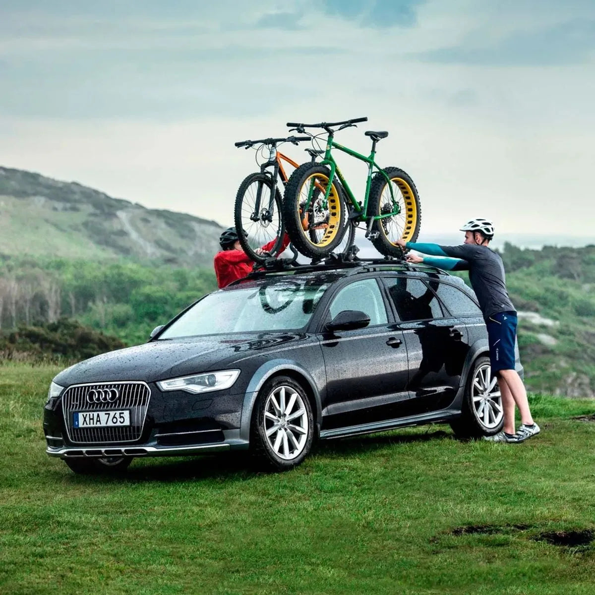 - Fija la bicicleta al portabicicletas y este al portaequipajes de techo (seguros incluidos)