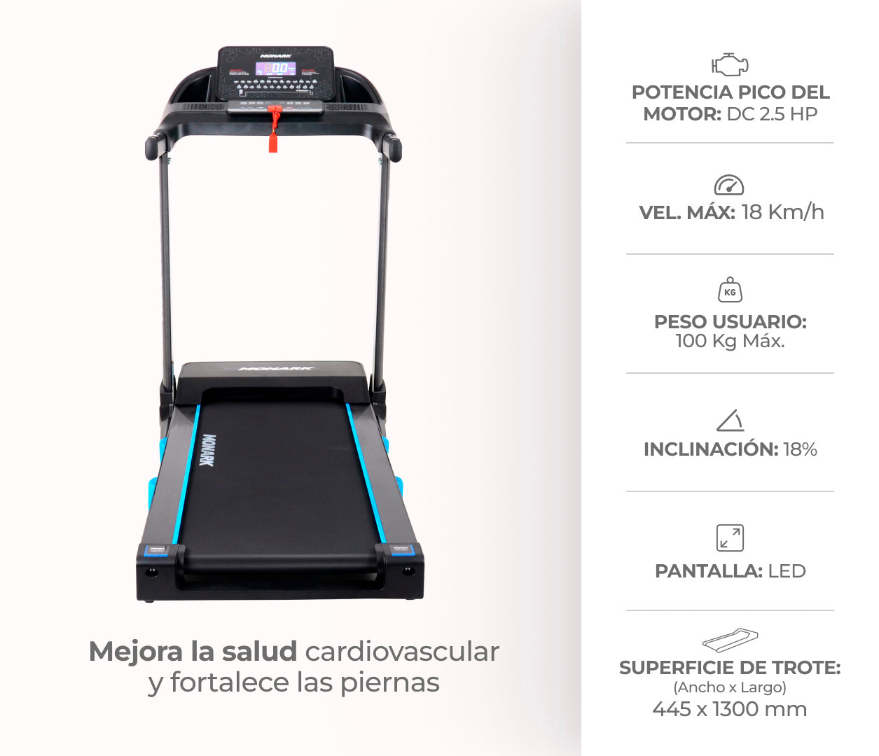 - Informacion de la Pantalla : Tiempo/Velocidad/Distancia/Calorías/Inclinación/Pulso
